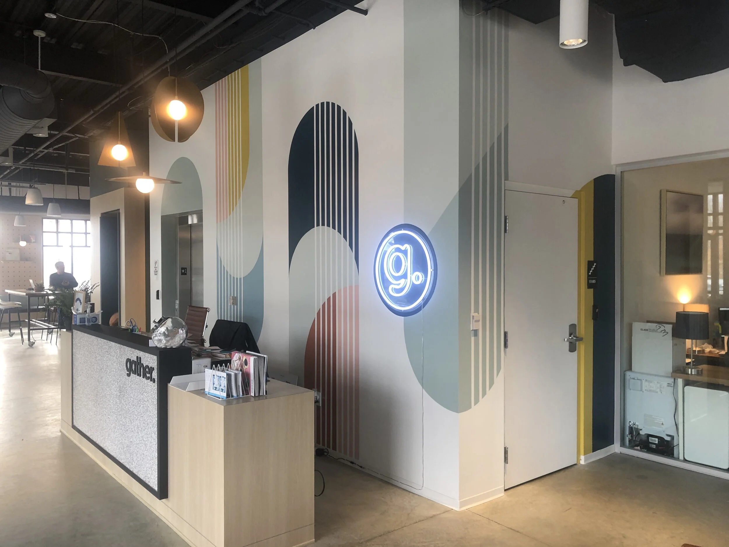 Richmond based design studio Campfire and Co hired me to bring their designs to life for the interior of the new Gather Co-working location in Midlothian, VA